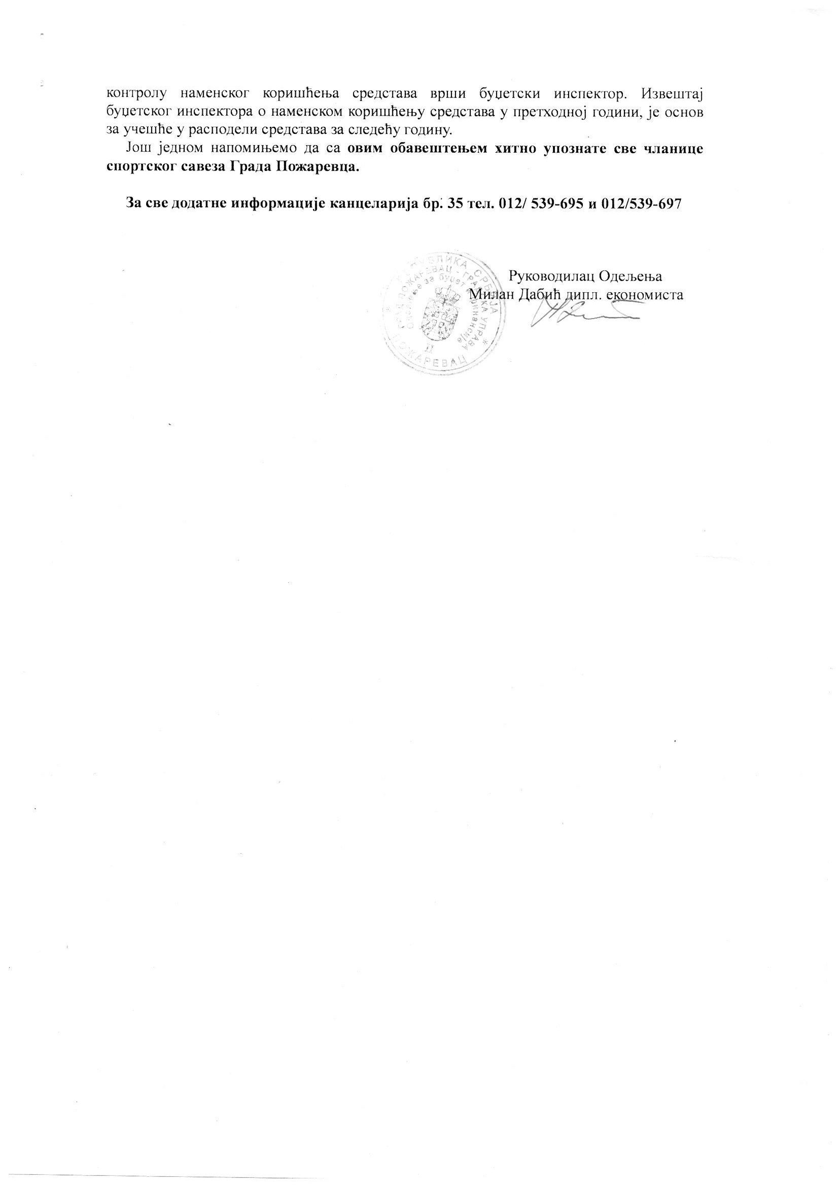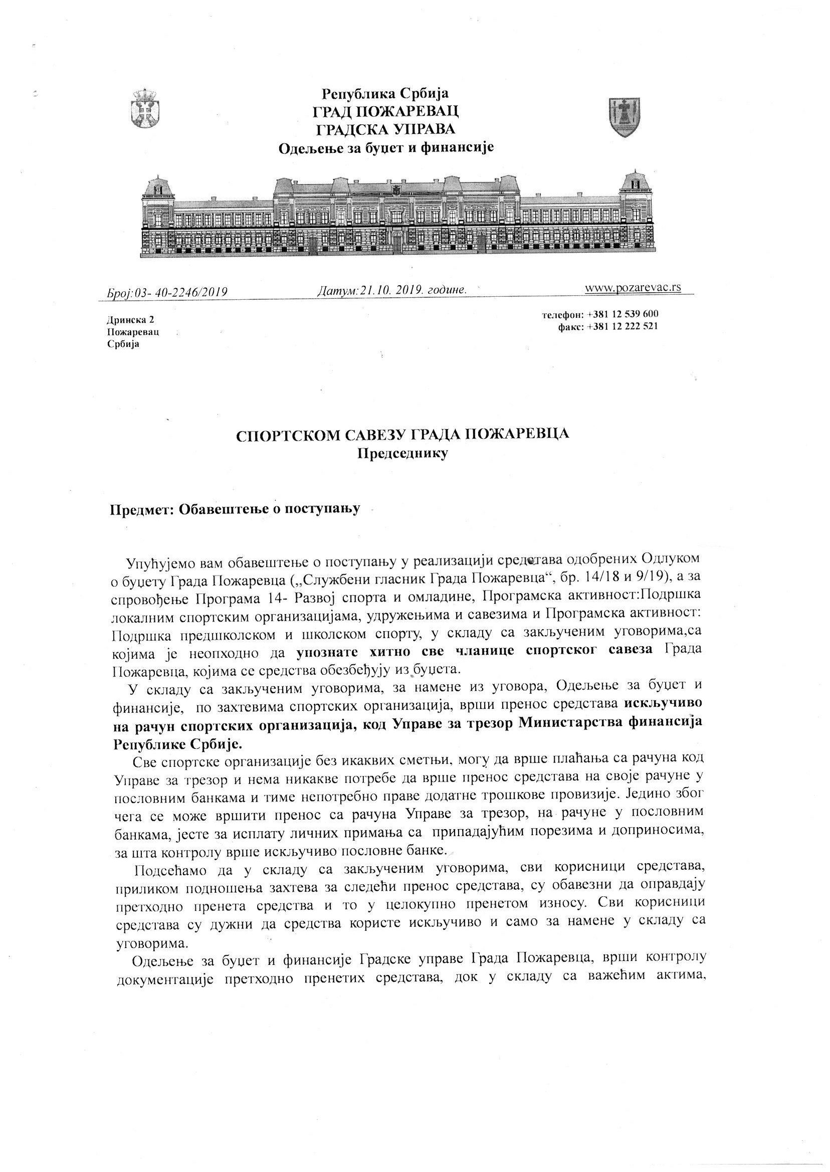 Обавештење за чланове Савеза о трошењу буџетских средстава